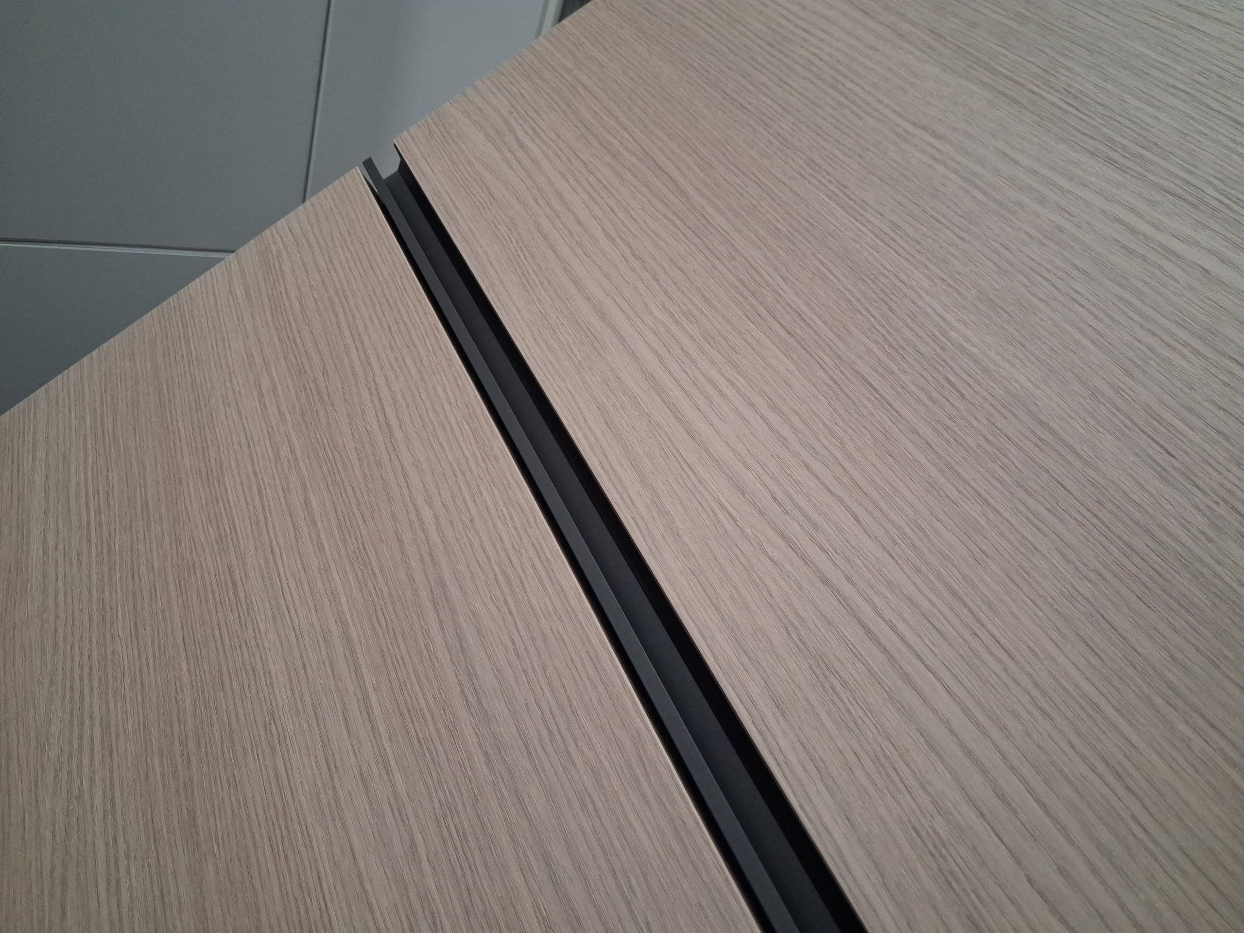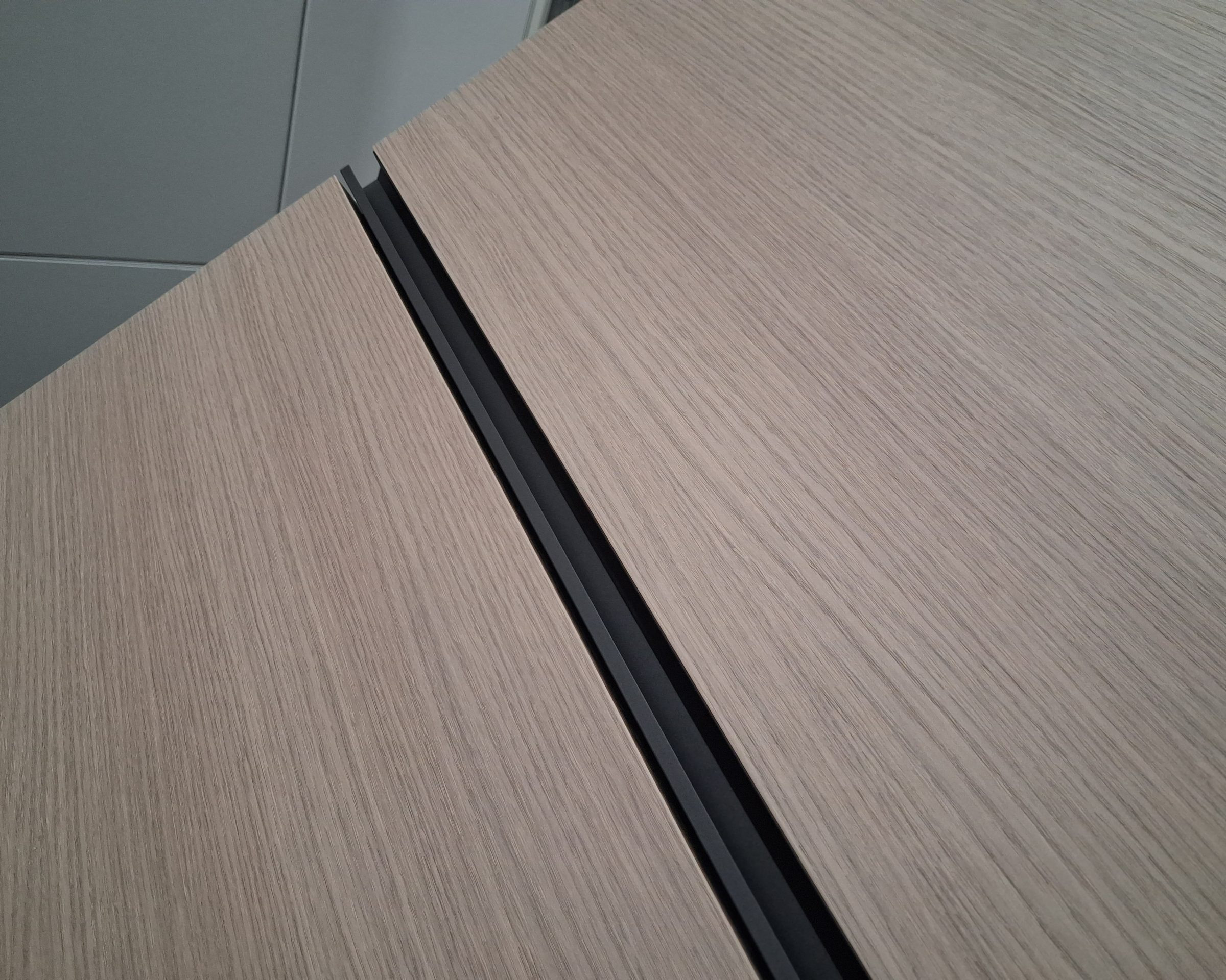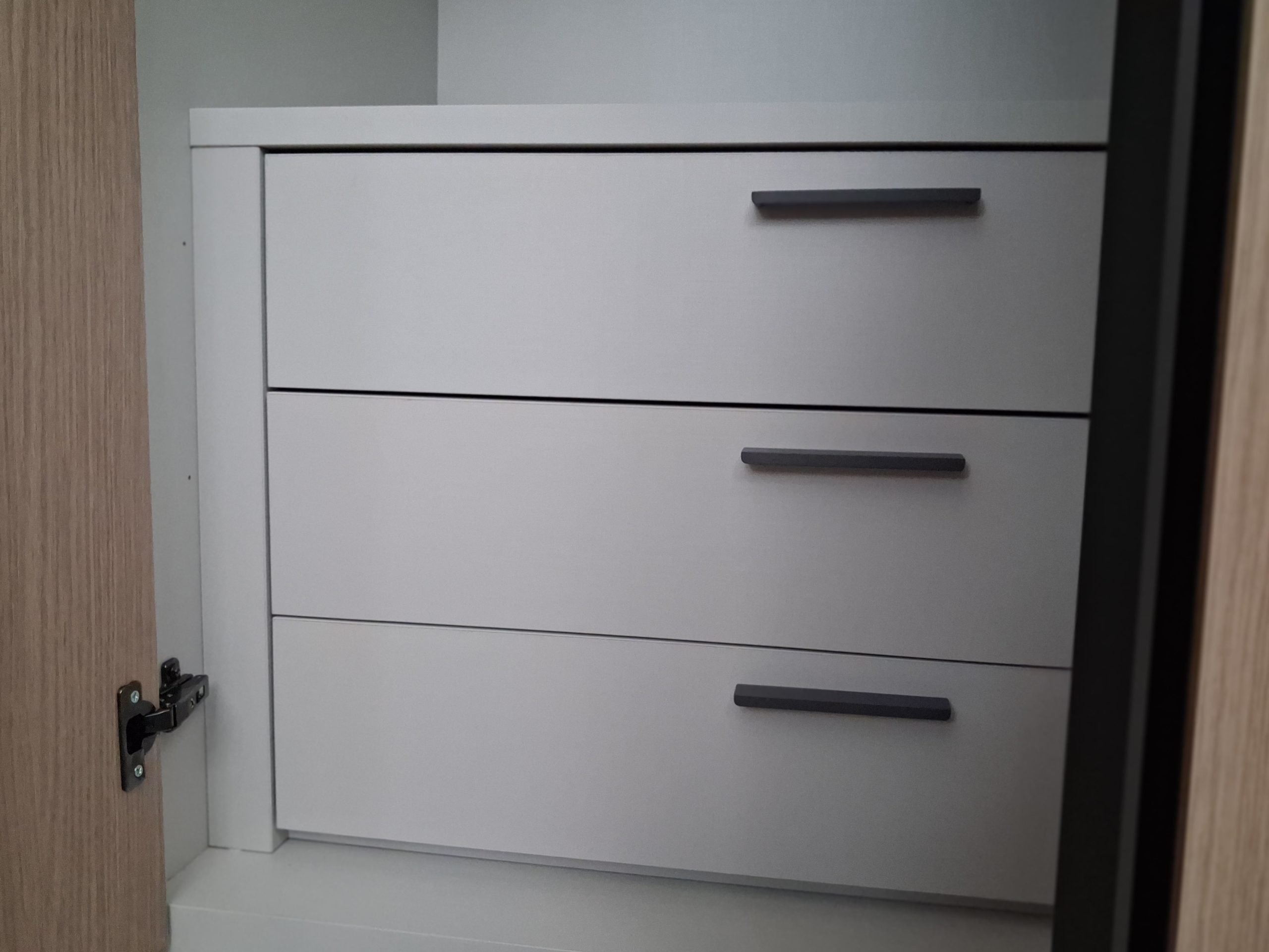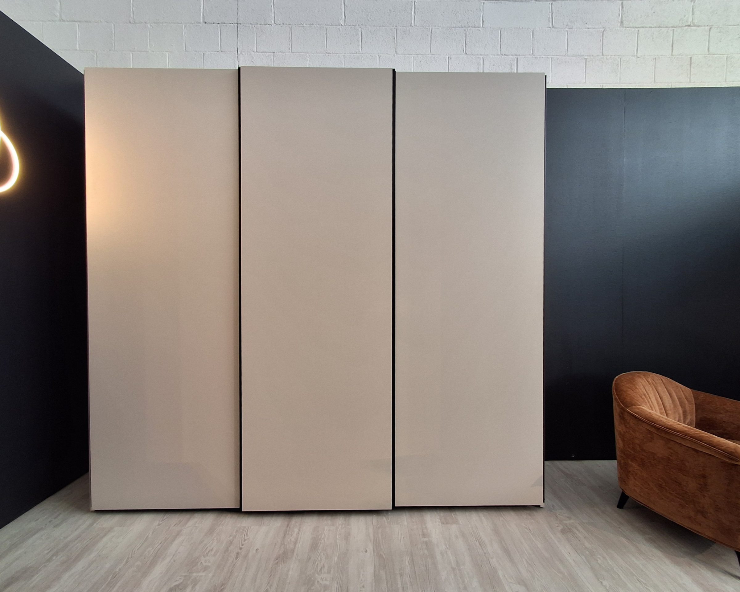 Accessoriato con ripiani, barre appendiabiti e cassettiera; Finitura Rovere sabbia