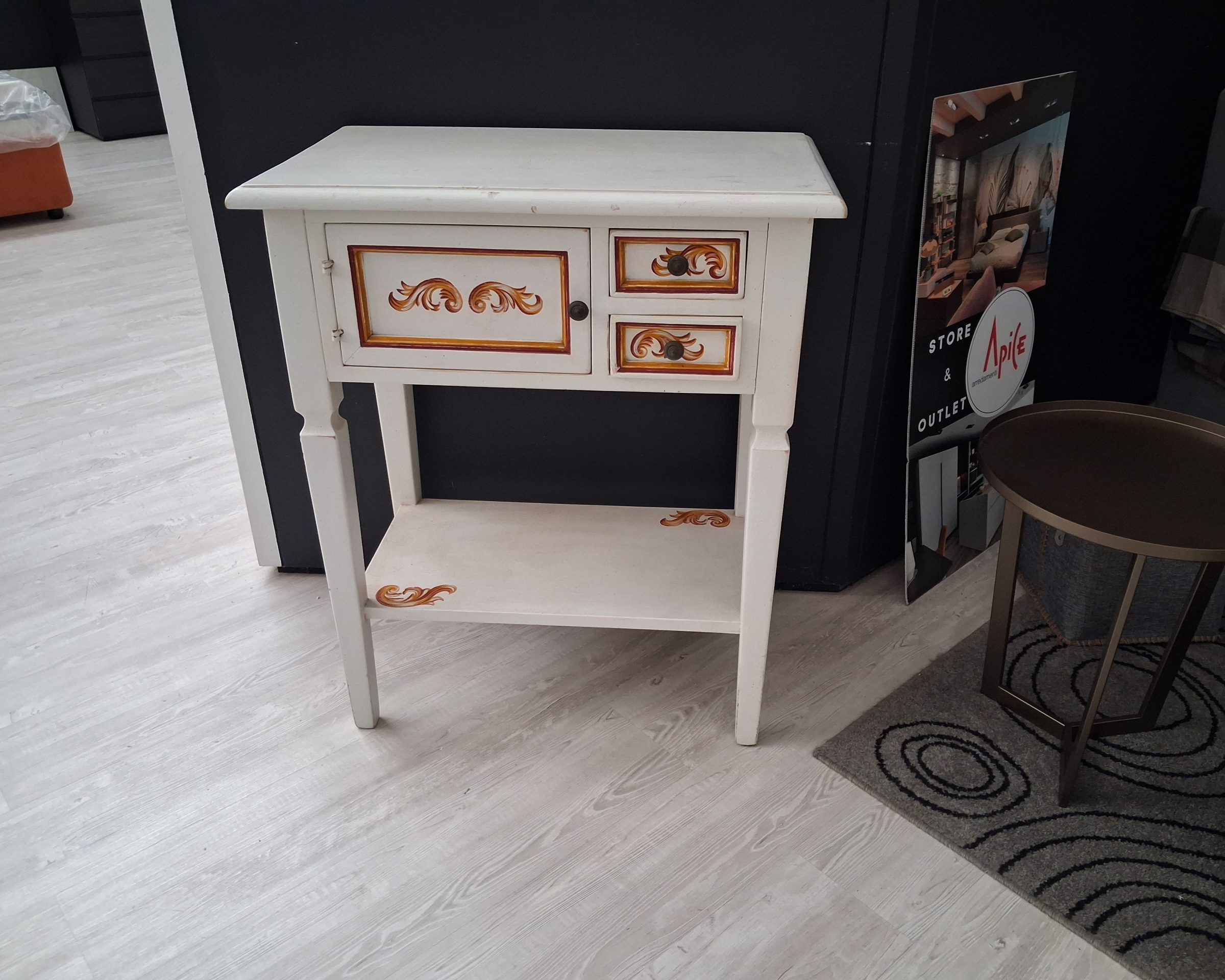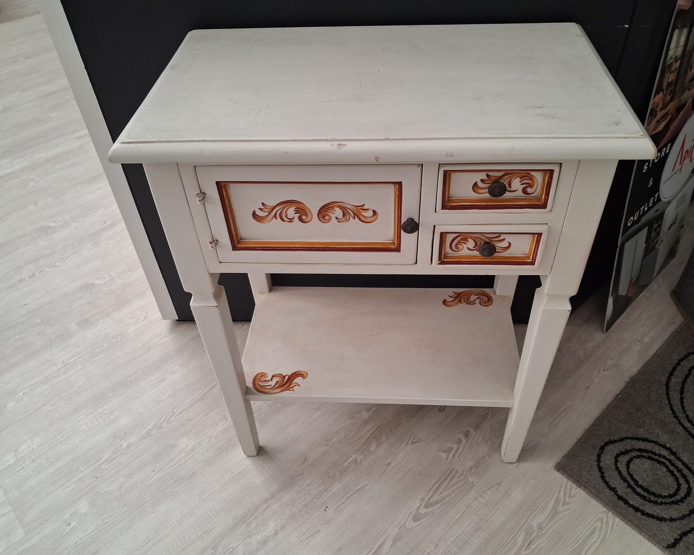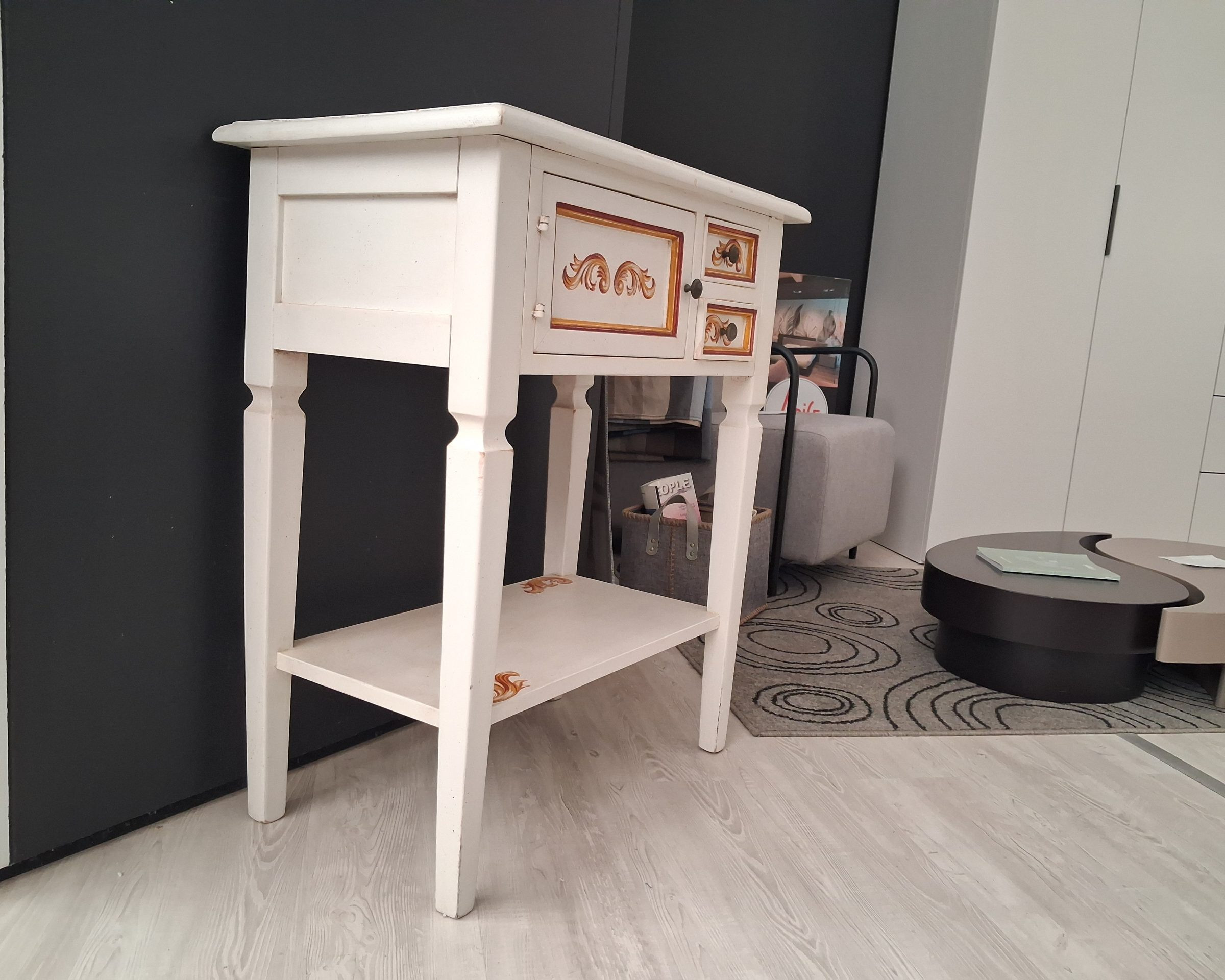 Mobile in legno massello dipinto a mano completo di n.2 cassetti, n. 1 anta