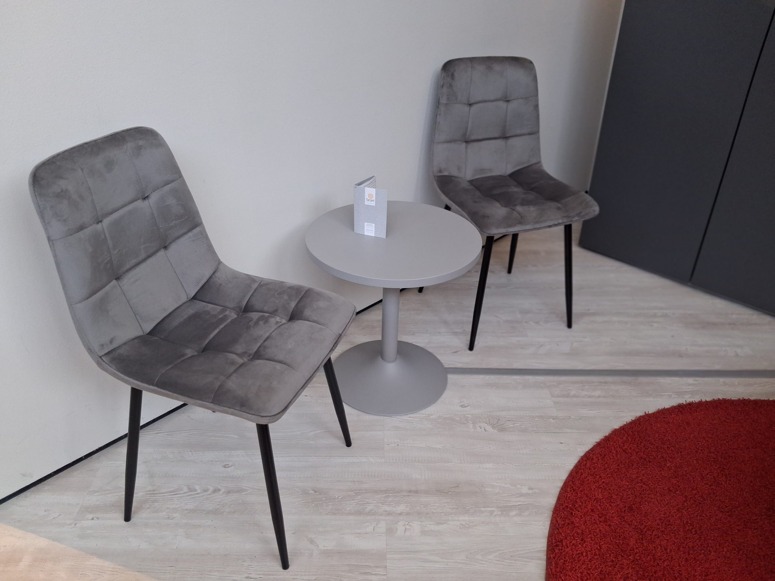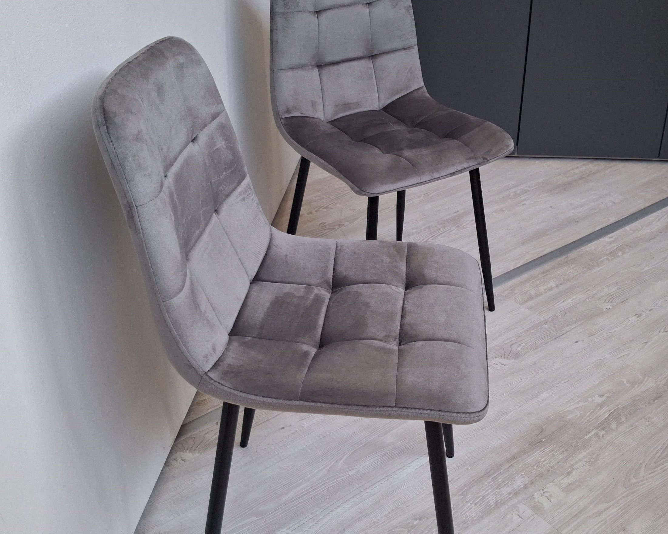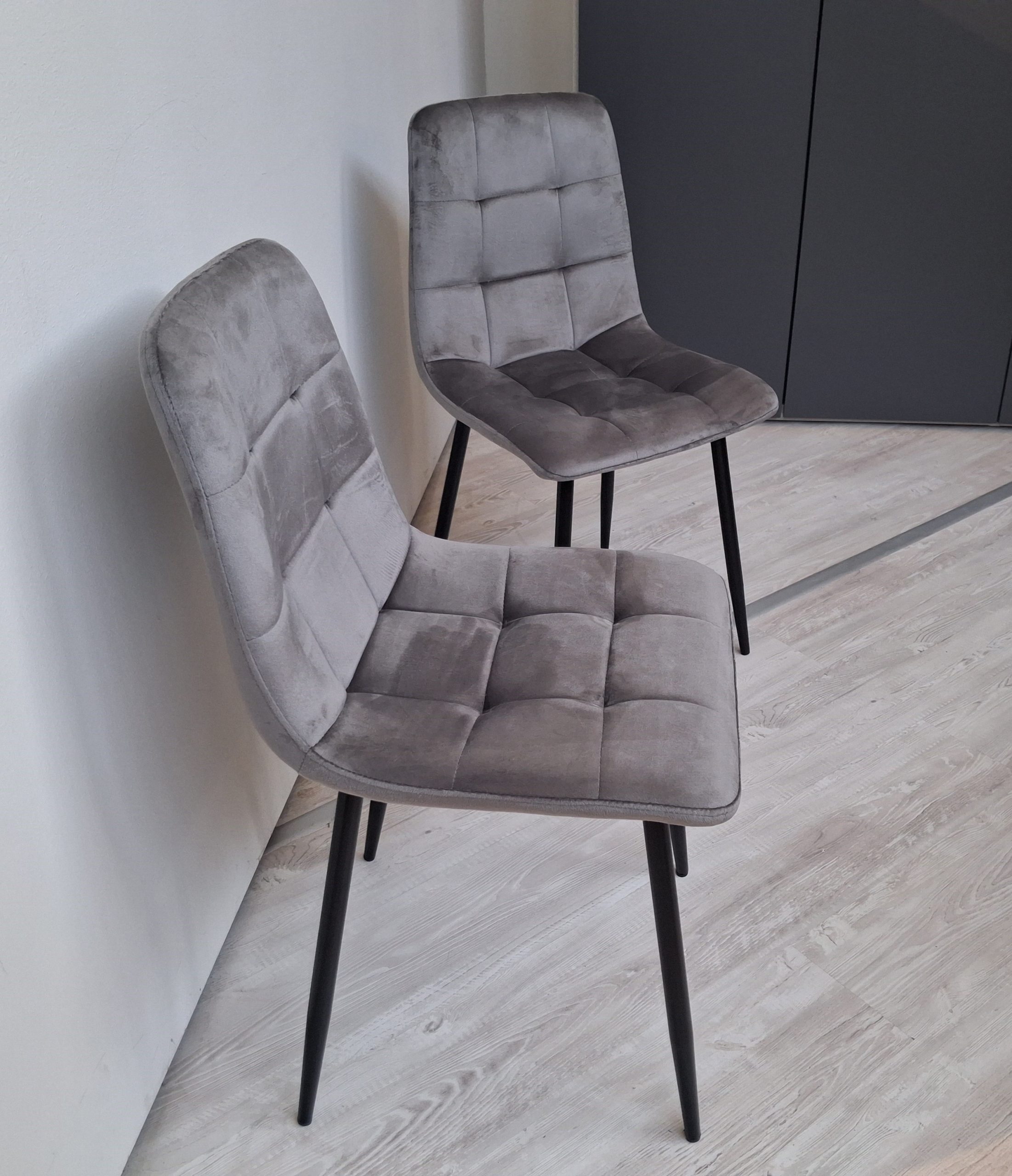 Sedia con struttura in metallo verniciato e seduta in morbida microfibra.