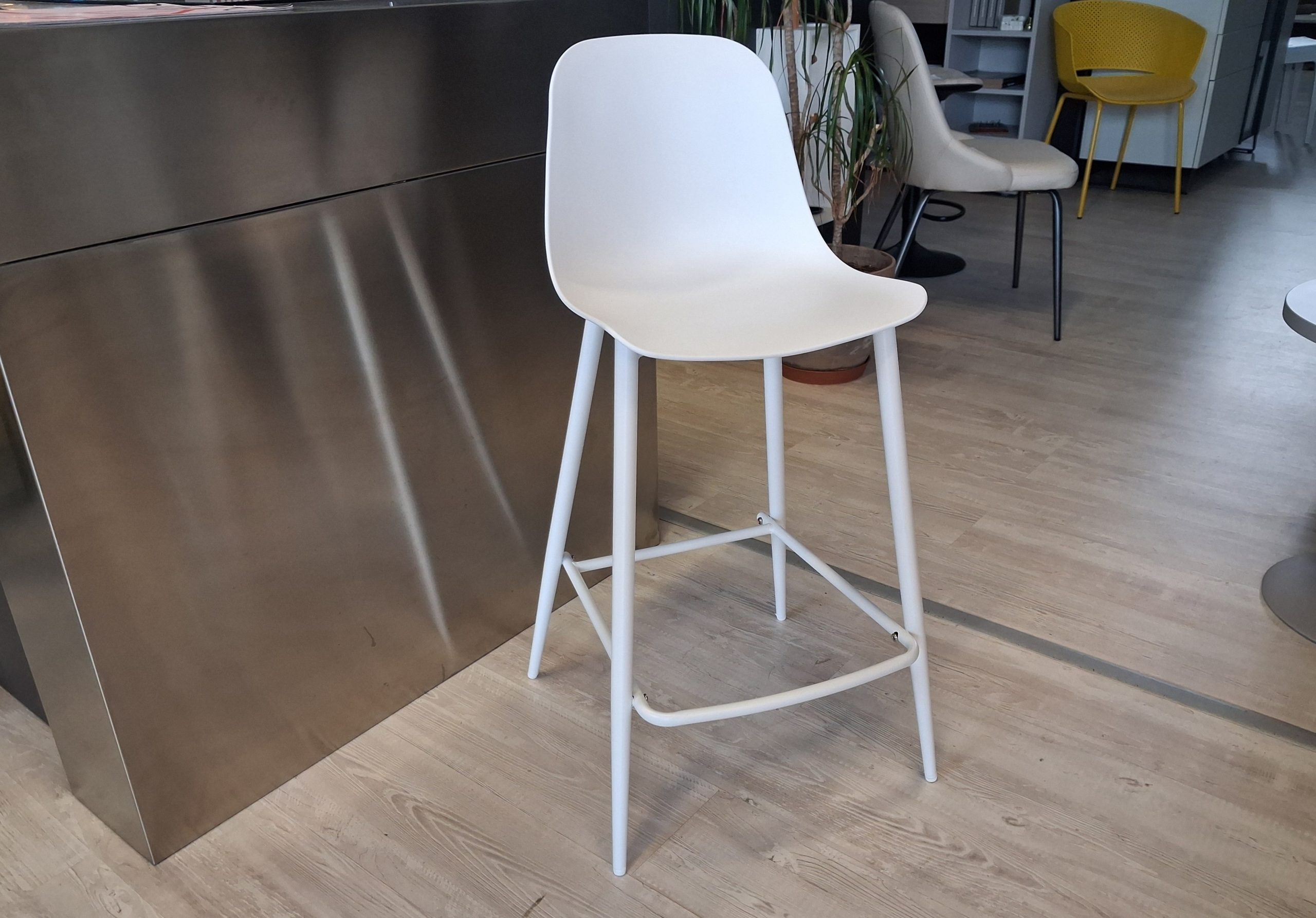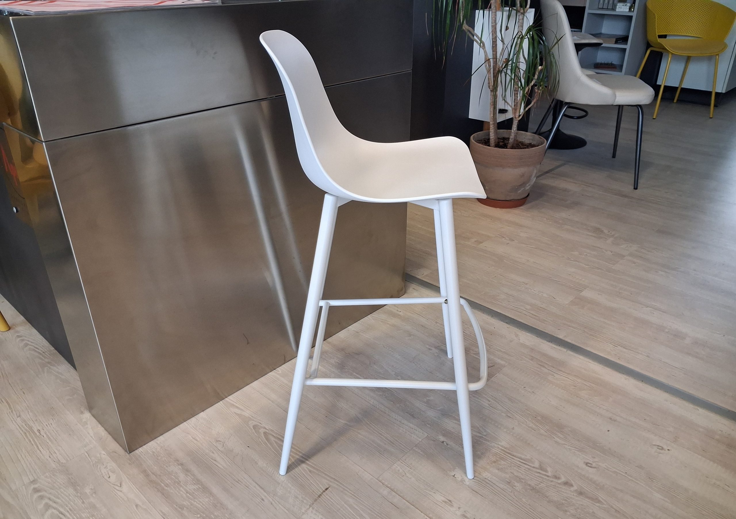 Sgabello FRIDA con seduta in polipropilene e gambe in metallo verniciato