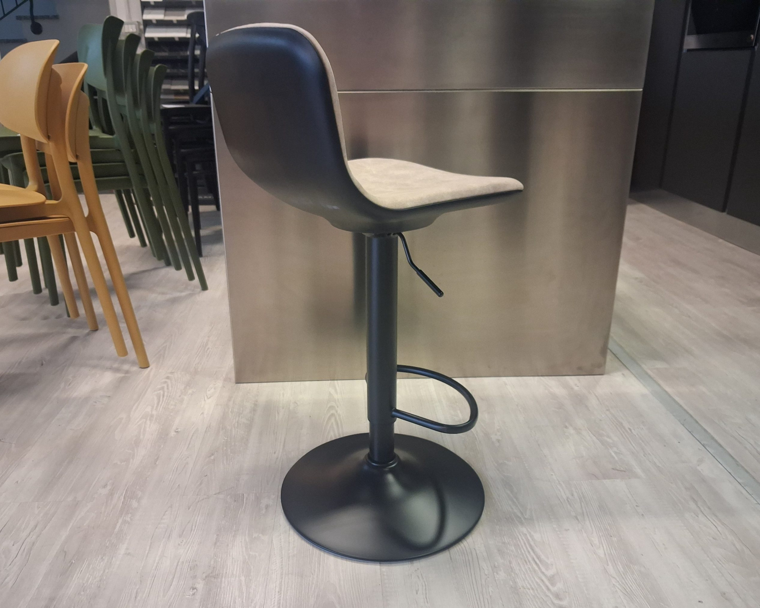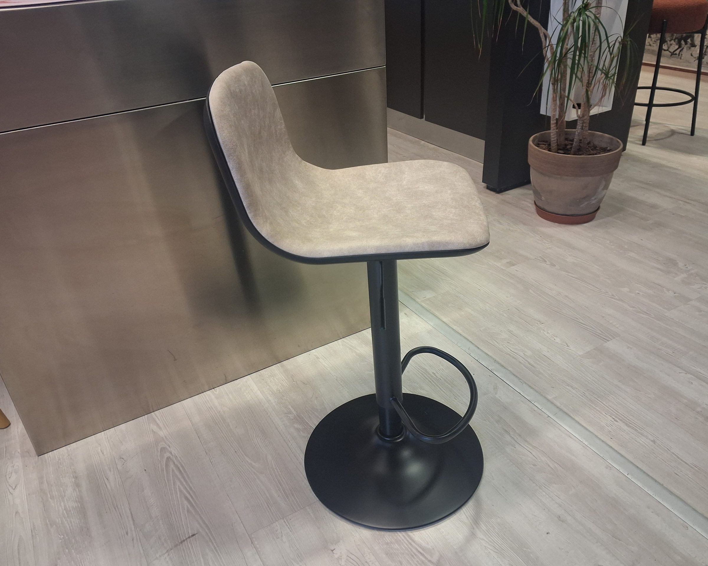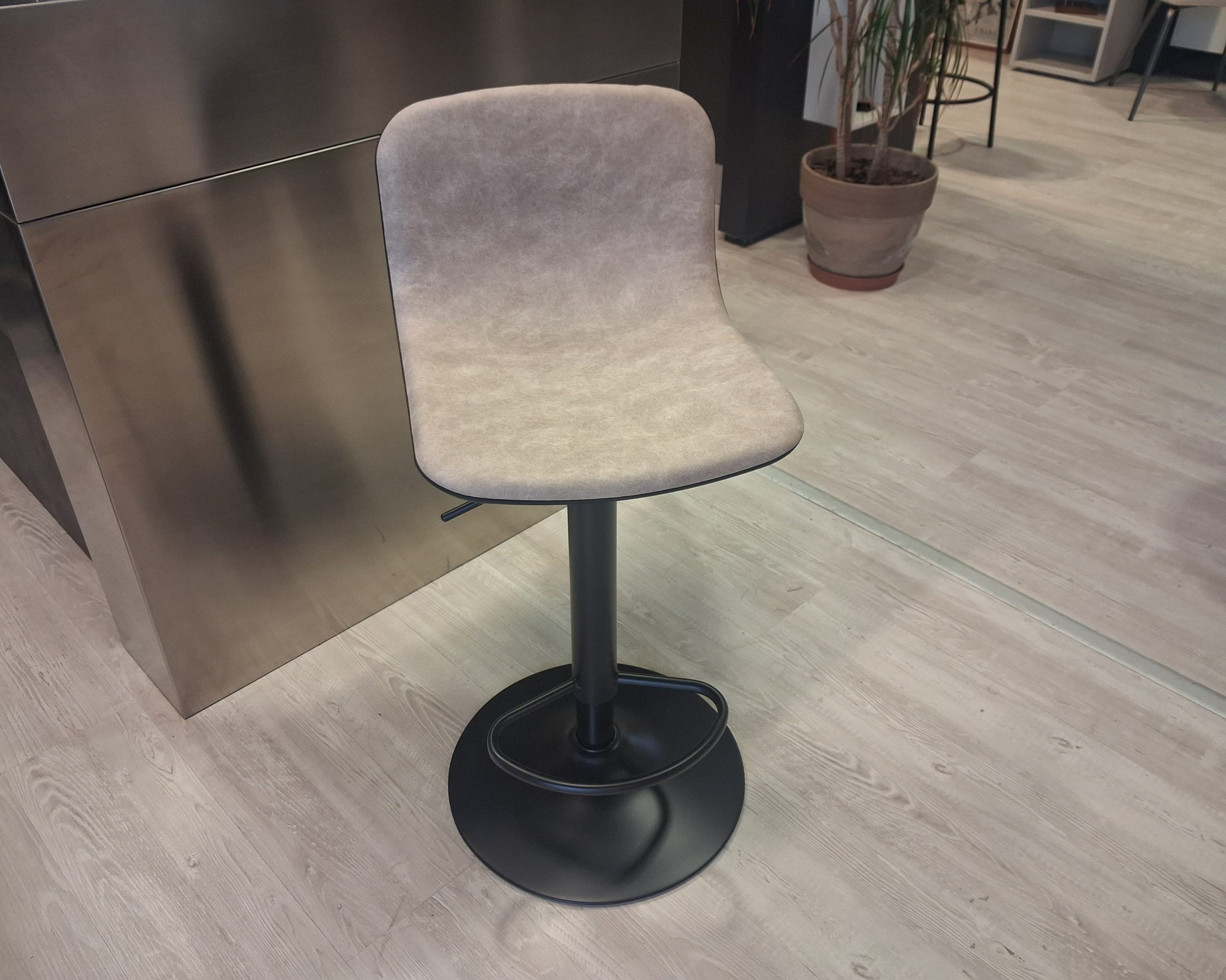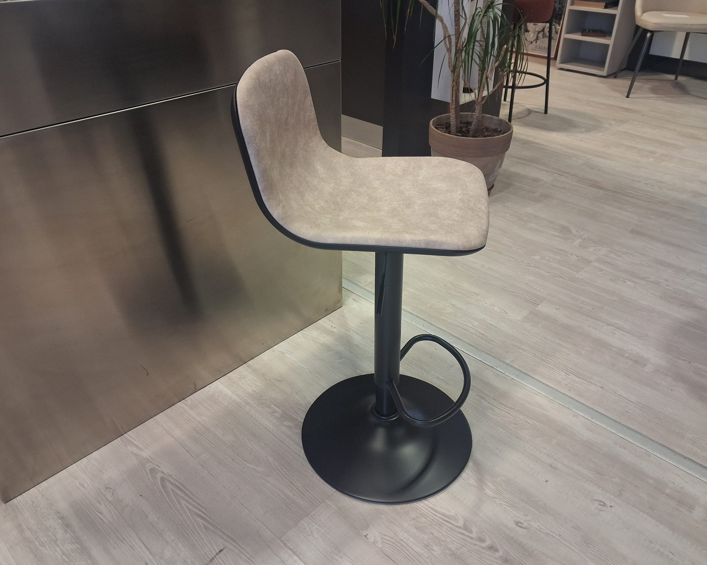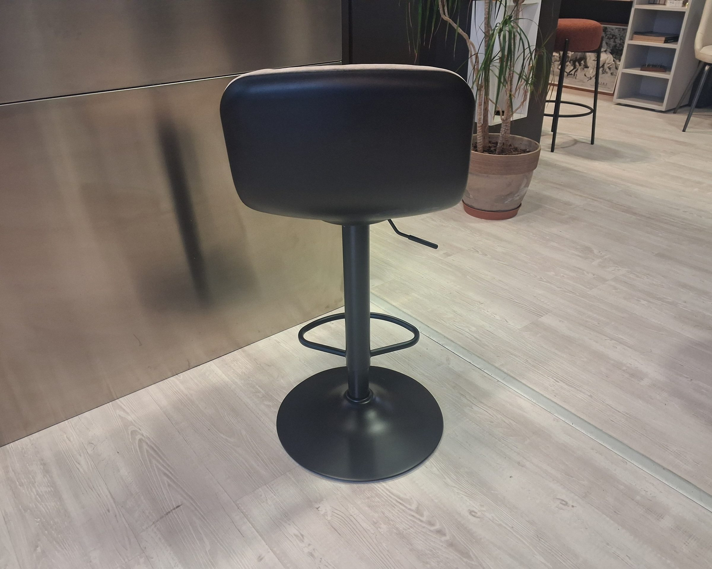 Sgabello regolabile in altezza con struttura tonda in metallo verniciato, seduta imbottita e rivestita in tessuto Soft-Touch.